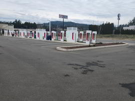 Here we are, back at the Harrisburg Tesla Superchargers again, our last charging stop before arriving back at our home in Vancouver, Washington.