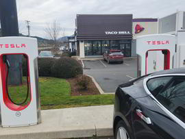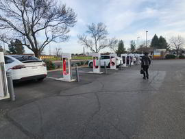 We did stop for a few minutes at the Tesla Superchargers in Corning, California, but forgot to take any photos at the stop. There were 6 150kW Tesla Superchargers here, and according to Google Maps, another two 75kW Tesla Urban Superchargers.
