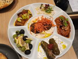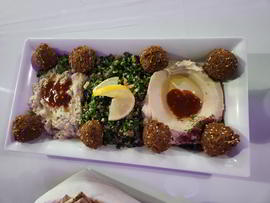 We ordered the Appetizer Sampler Plate which gave us a nice selection of a number of items. I ordered the Yokut Red Blend Wine from Eastern Anatolia, Turkiye, to go along with the Mideastern Food.