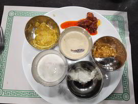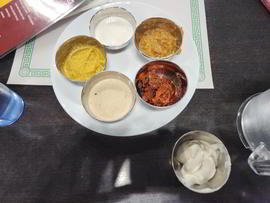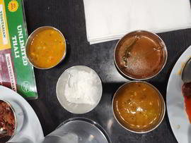 They have a daily lunch buffet and a Special Dinner Buffet with Live Chaat Station just on Thursday. They have Pelli Bhojanam (Unlimited Thali) Monday to Wedneday dinner. That is what we went for. The amount of food they served was amazing! I got the Vegetarian Unlimited Thali and my wife got the Non-Vegetarian Unlimited Thali. For each of us that included: Pulka, Special Rice, Dal Curry, One South Indian Vegetarian Special Curry, One South Indian Special Fry Curry, Dosa (Home Style), White Rice, Sambar, Rasam, Curd Rice, Roti Pachadi (Veg Pickle), Peanut Chutney, Home Made Fresh Curd, Papad and Dessert. My Unlimited Vegetarian Thali also came with One North Indian Special Vegetarian Curry and Vegetarian Dum Biryani. My wife's Unliminted Non-Vegetarian Thali also came with Andhra Chicken Curry and Chicken Dum Biryani.