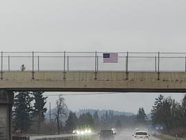ODOT to remove American flags from I-5 overpasses, by NBC 16, Sunday, February 27, 2022. The Oregon Department of Transportation says they need to be removed due to safety concerns. Over the past six months the flags have popped up on multiple overpasses from Cottage Grove to Woodburn."