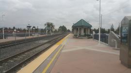 Thu 2015-May-21 07:50 AM PT MP 0019 - Arrival at Fullerton Amtrak / Metrolink Station. 120 E Santa Fe Ave, Fullerton, CA (Served by Amtrak Pacific Surfliner, Amtrak Southwest Chief and Metrolink Trains). (230 miles remaining on battery).