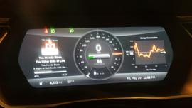 Fri 2015-May-29 04:06 PM CT MP 0596 - Depart Goodland Tesla Supercharger. 2631 Enterprise Rd, Goodland, KS. (214 miles remaining on battery).