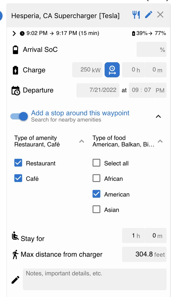 stop in Hesperia. I like Tesla's specific listing for Restrooms,