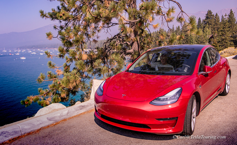 I knew there would be some scenic overlooks where I could get a shot of the Model 3 with the lake in the background. North Shore with plenty of smoke from California fires.