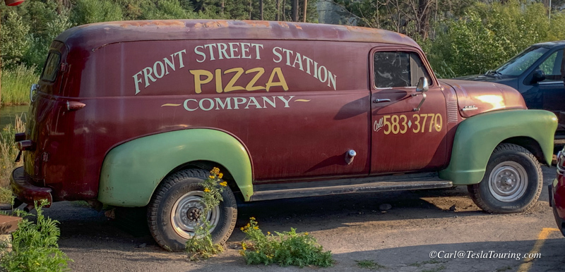 From the Supercharger in Tahoe City due west, we found the Front Street Station Pizza place.
